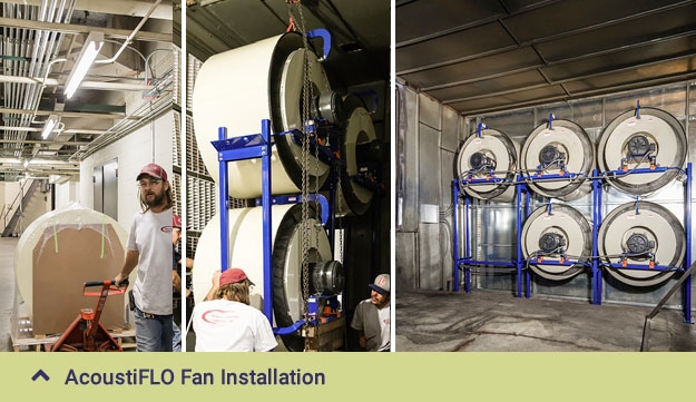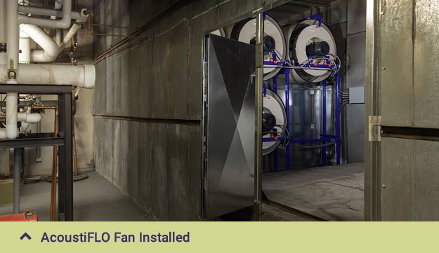 The facility management company CBRE and Wells Fargo working with their consulting group Concord West and the selected mechanical contractor, American Mechanical Services, considered several options for replacement of the aging fan. Ultimately, after consideration of the features offered, the ability to meet the owner’s criteria, and ease of installation, AcoustiFLO modular fans were selected for the retrofit.